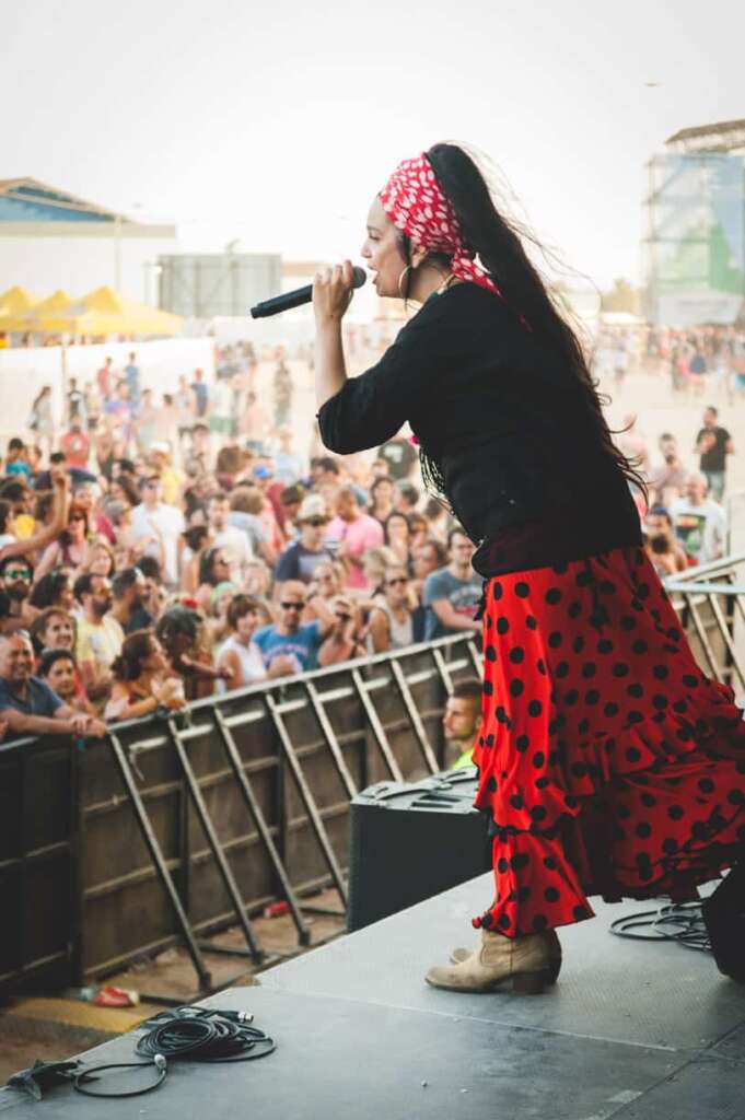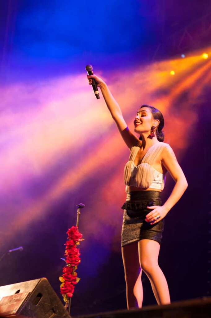 Because most festivals tend to start during the day and go into the night, you’ll be working with many different lighting conditions. I like to use 3 or 4 different pre-saved settings on my camera in order to alternate quickly and easily. When shooting artists, my priority is to freeze motion. If it’s dark and I’m only dealing with the stage lights, I crank my ISO to as high as my camera will allow without too much noise (my camera unfortunately peaks at about 1000 but there are cameras that can get much higher) and set my aperture to 4.5 or lower. This allows me to use a faster shutter speed, which is important when your subject is moving all over the stage. If you’re shooting a more mellow artist, who’s maybe seated, you can lower your shutter speed which allows you to use a smaller aperture and lower ISO.