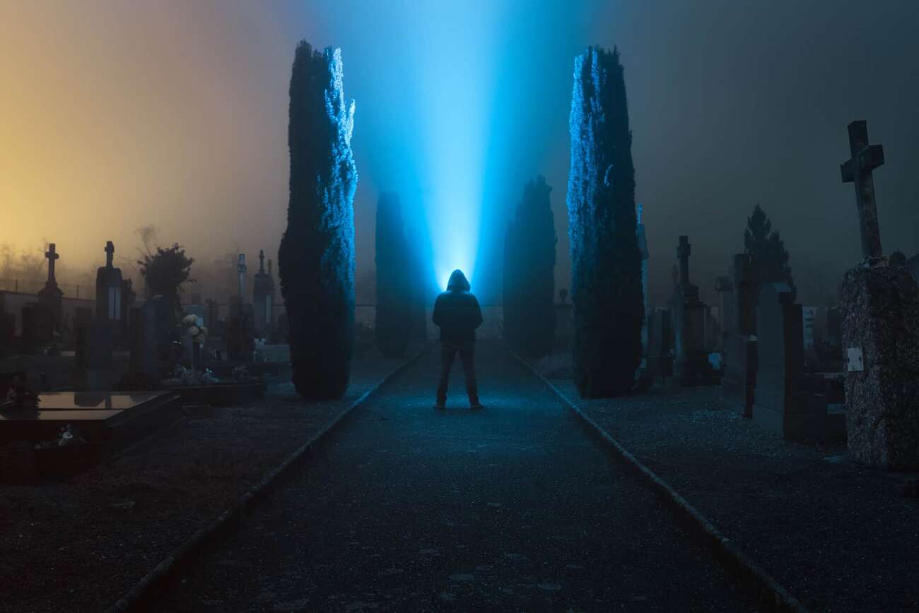 A human hint in the frame can add some life and another perspective to the picture. Play with the lights (on site, or with the flashlight you brought), to create contrasts, to highlight some relevant elements.
