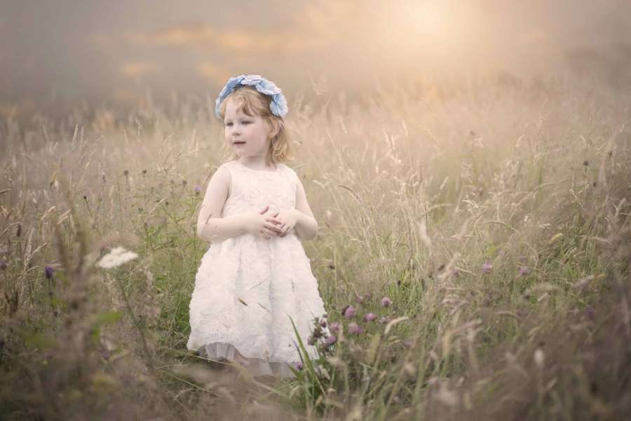 I look for romantic, vintage or countryside places. Modern architecture is fine in its own right but for timeless portraits, you need softness and a bit of nature. It doesn’t have to be a well-tended park or landscaped grounds, an overgrown field is great. There’s something magical about little children looking for bugs or butterflies in long grass.